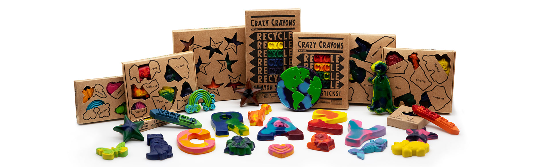 Crazy Crayons are a 100% Recycled Product created from the generous crayon donations made to the National Crayon Recycle Program.